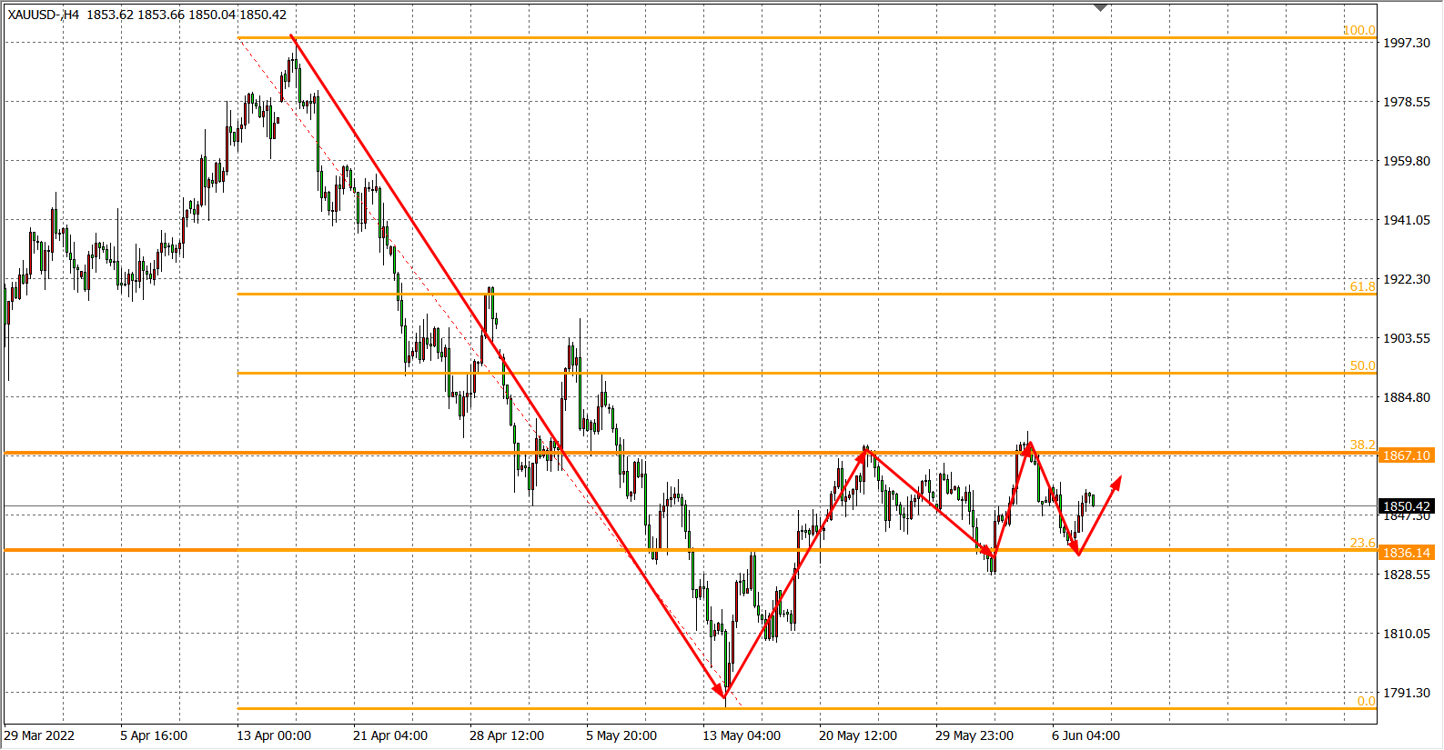 备选策略:在1850.00之上看涨,目标1858.00 1867.00