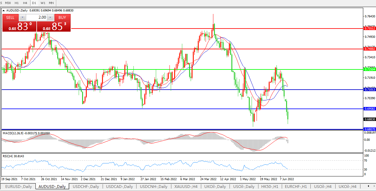 AUDUSD  NZDUSD 紧缩政策施压商品,澳元兑美元加速回落