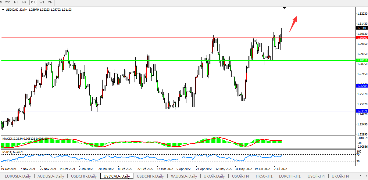 美元兑加元USDCAD 日线图: