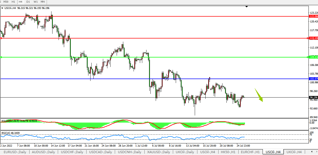 美国原油USOil 4小时图