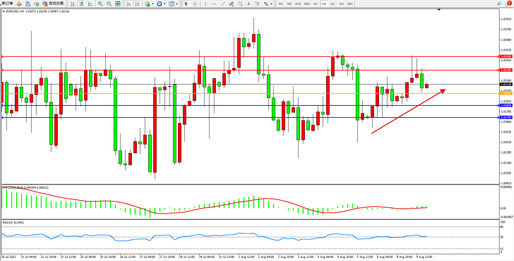 交易策略:1.02003上方看涨,目标1.02285、1.02450