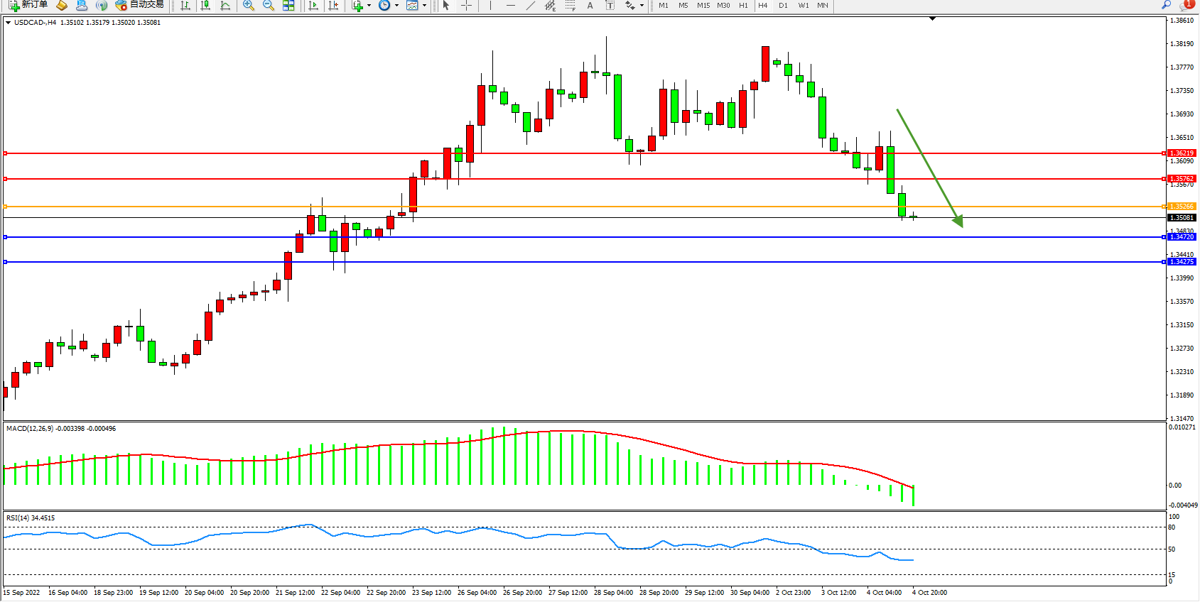 美元加元USDCAD——4小时K线图显示: