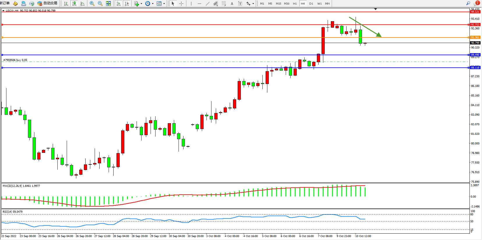 原油USOil——4小时K线图显示: