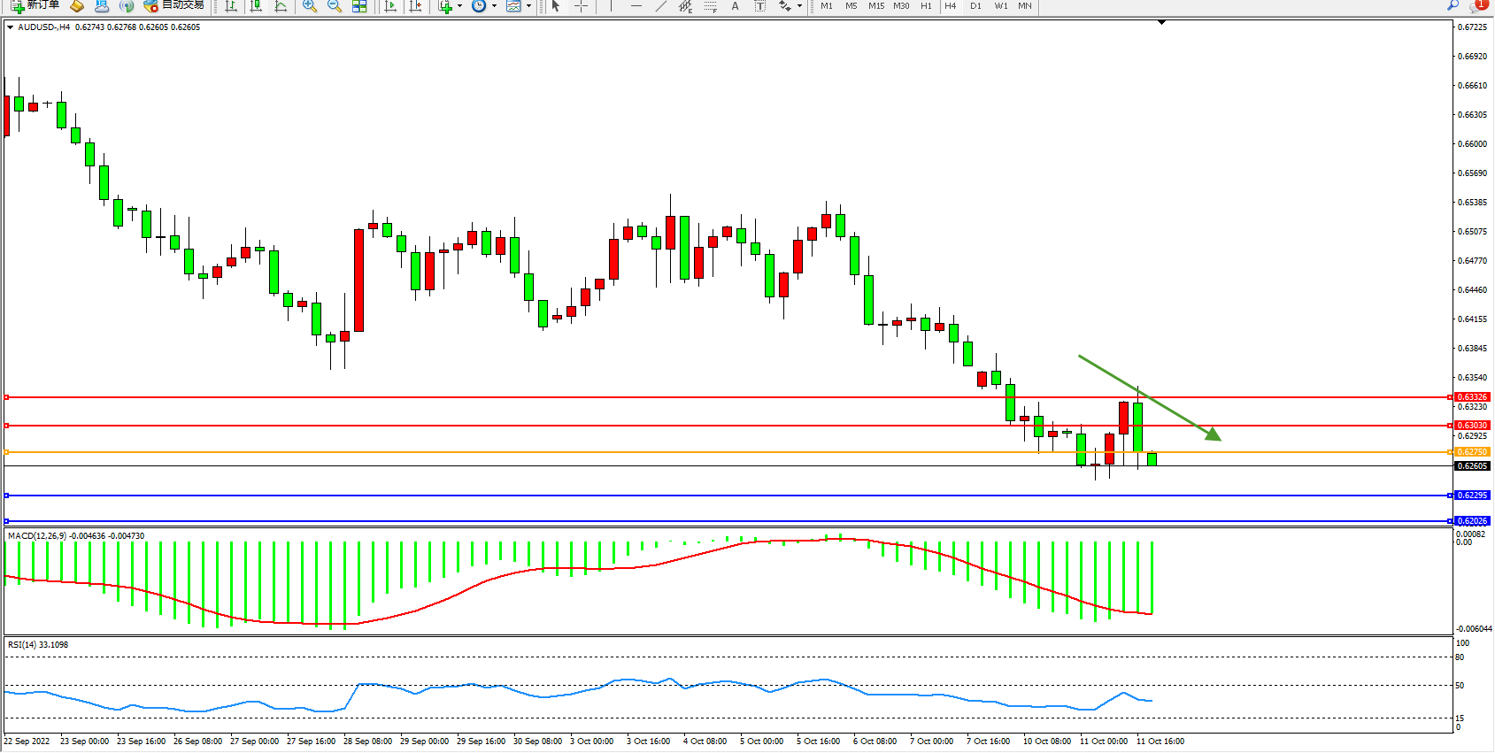 交易策略:0.62750下方看跌,目标0.62295、0.62026
