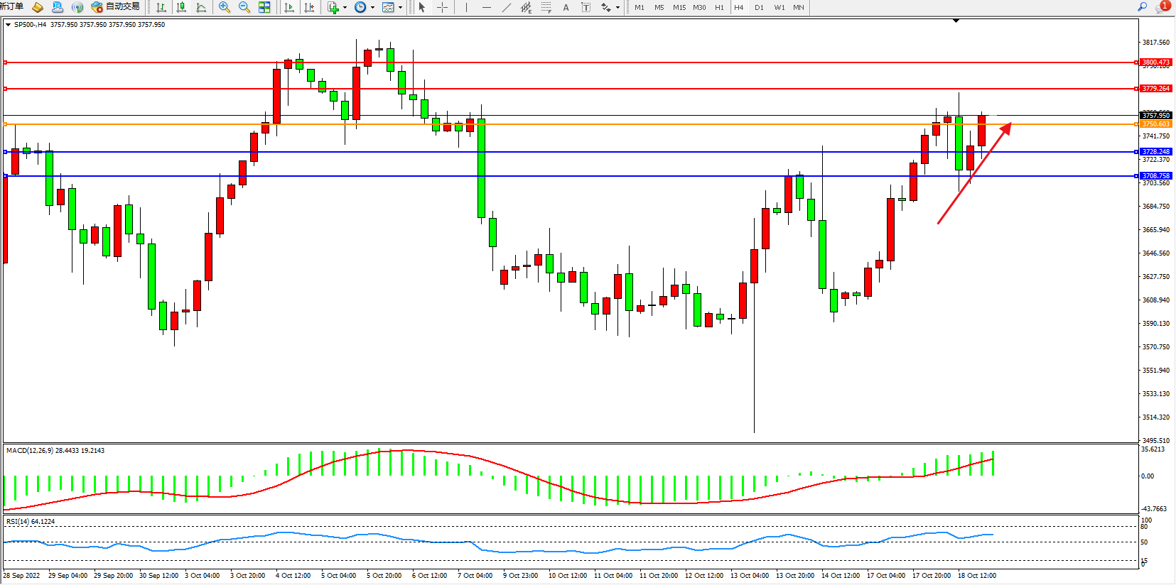 标普500指数10月18日(周二)收盘上涨45.15点,涨幅1.23%,报3723.10点;市场流动性明显恶化。投资者的投资组合中有6.3%是现金,这是2001年4月以来的最高水平。调查显示,预计未来12个月经济将走弱的受访者人数接近创纪录水平,79%的受访者则预期通胀将在同期内下降。