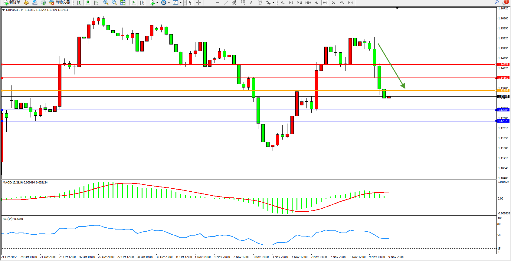 英镑美元GBPUSD ——4小时K线图显示: