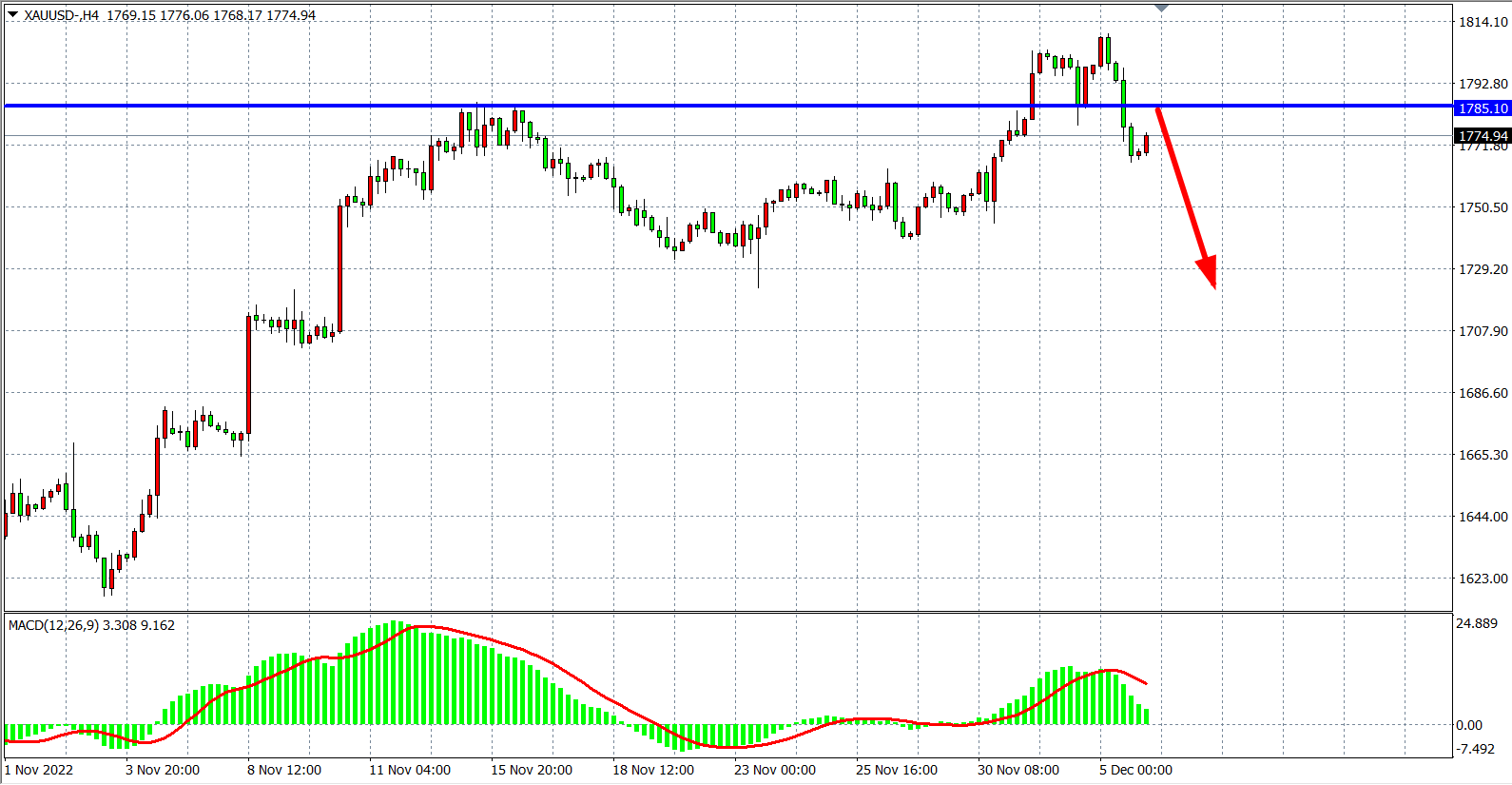 交易策略:在1785.00 之下看跌,目标1770.00         1755.00