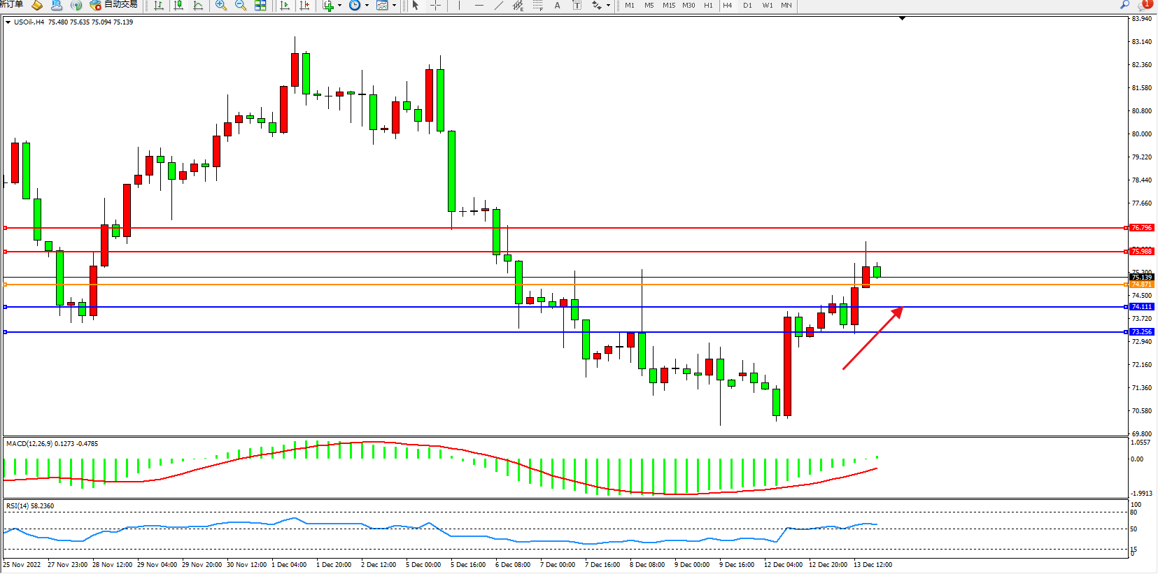 原油USOil——4小时K线图显示: