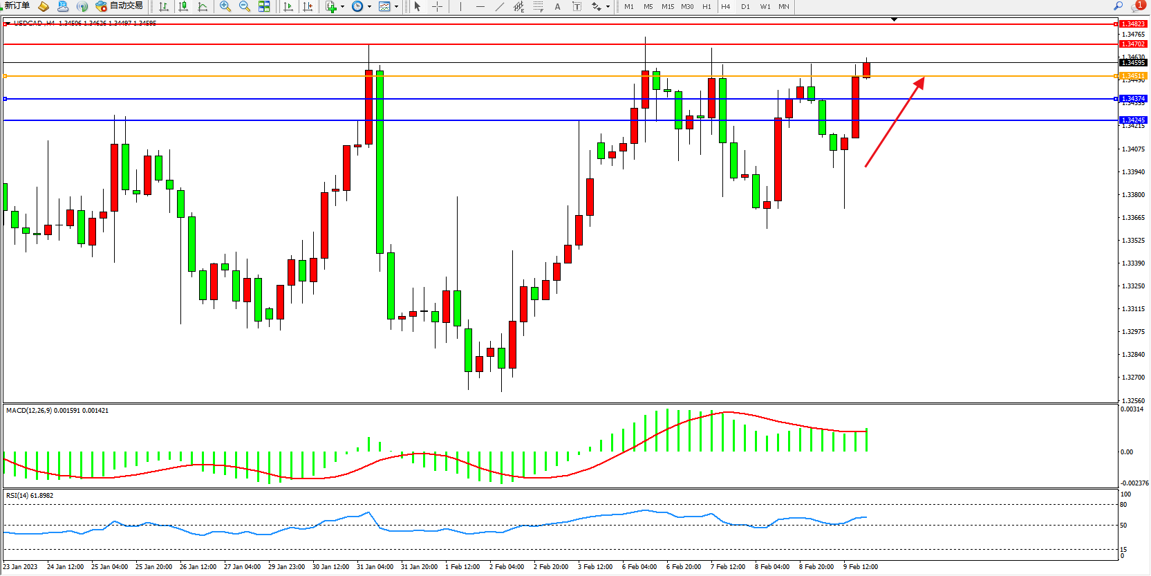 USDCAD:多头上扬