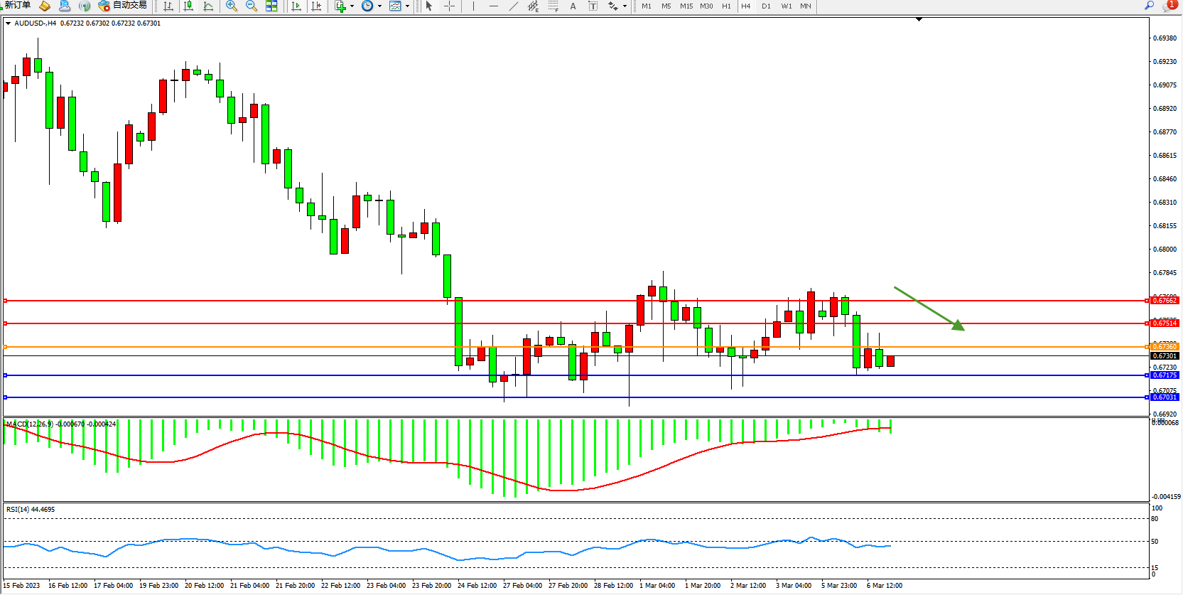 交易策略:0.67360下方看跌,目标0.67175  0.67031