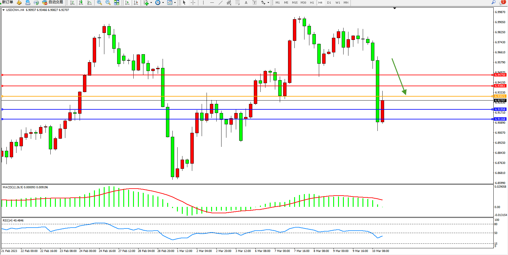 交易策略:6.93021下方看跌,目标6.91958 6.91168