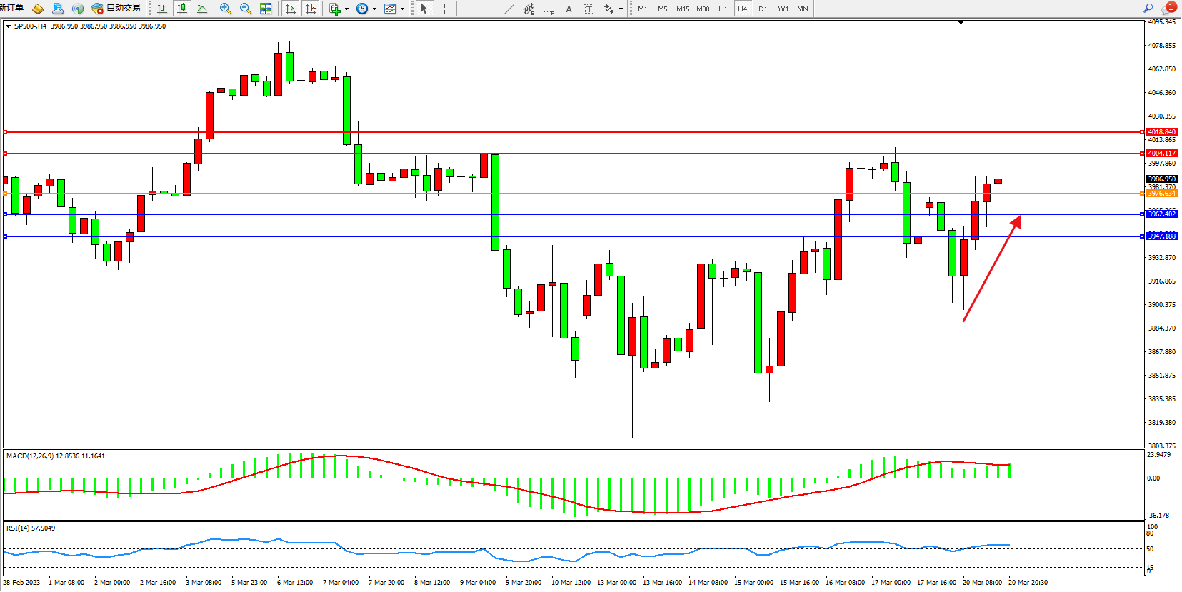 标普SP500——4小时K线图显示: