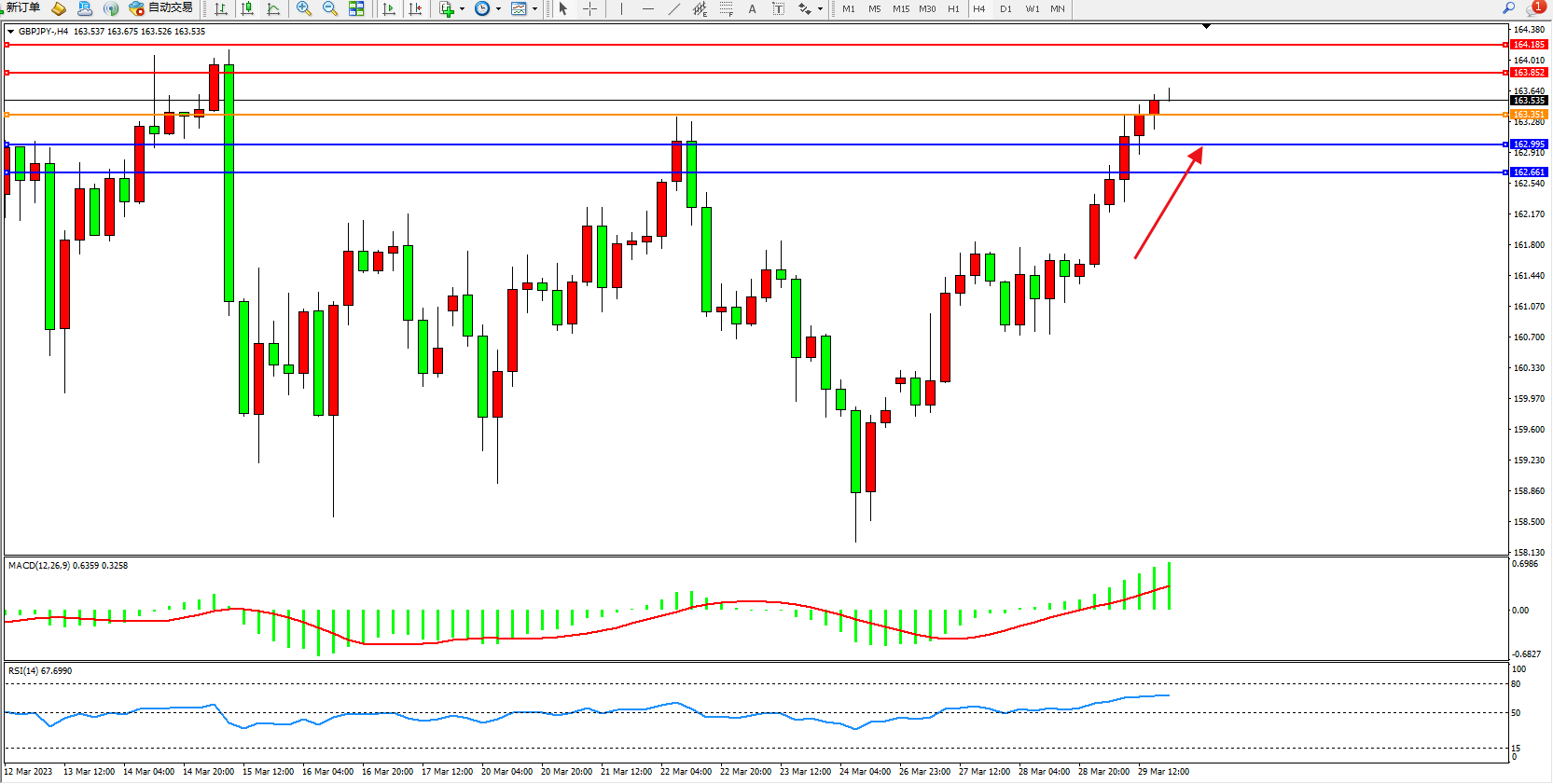 交易策略:163.351上方看涨,目标163.852 164.185