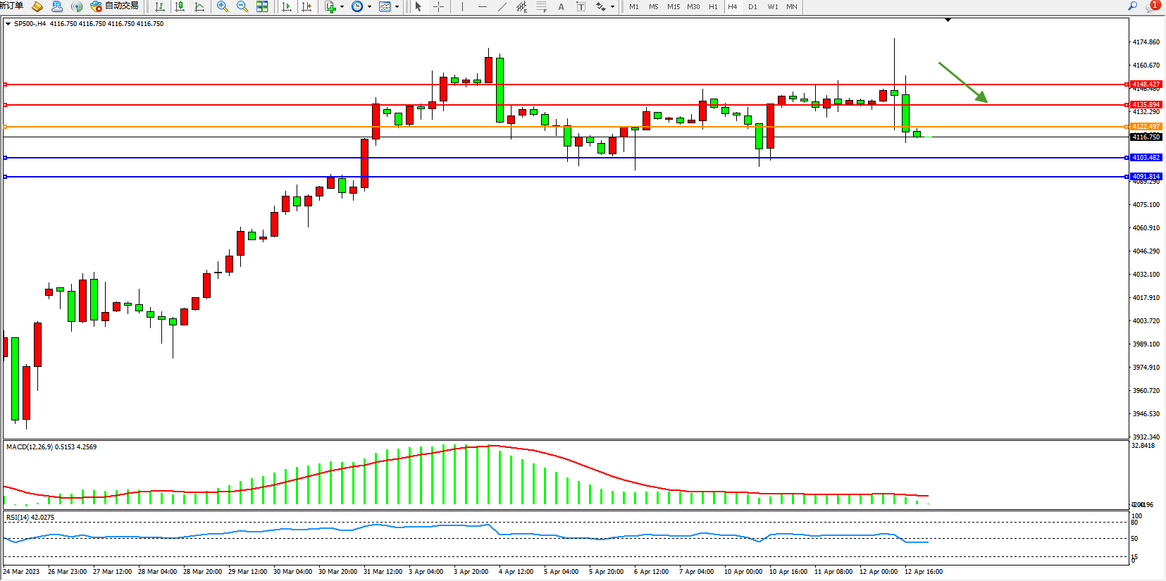 标普SP500——4小时K线图显示: