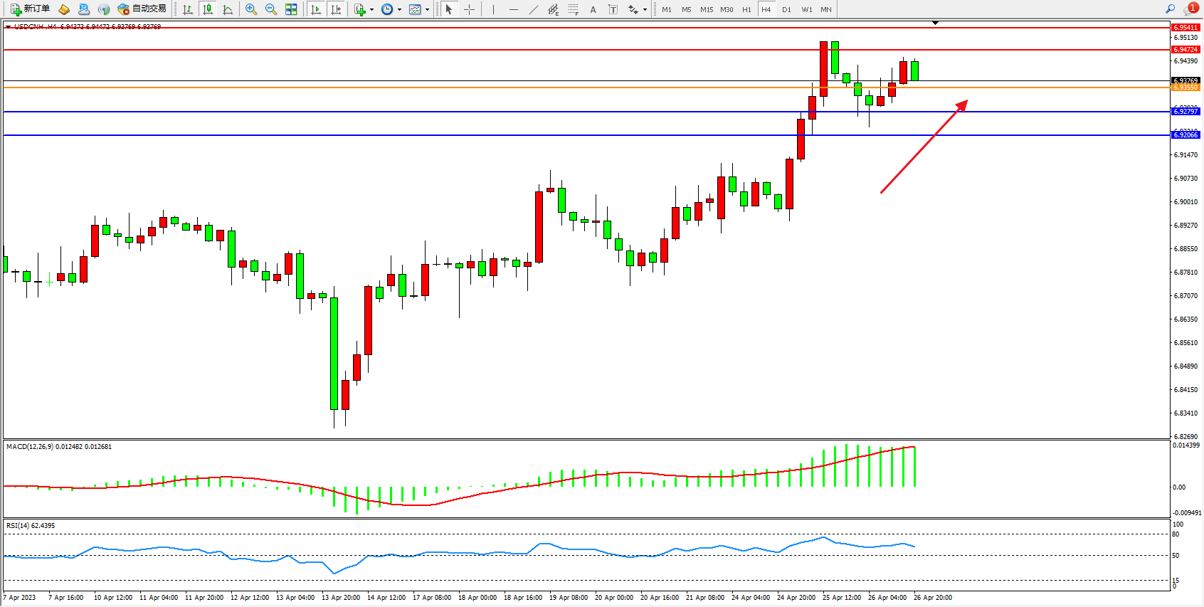 备选策略:6.93550上方看涨,目标6.94724 6.95411