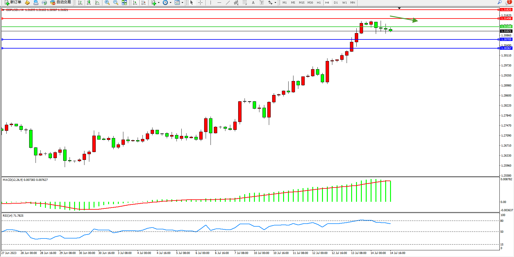 英镑美元GBPUSD ——4小时K线图显示: