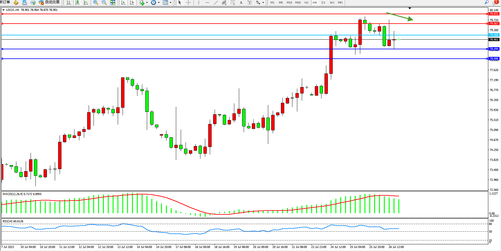 交易策略:79.088下方看跌,目标78.494 78.086