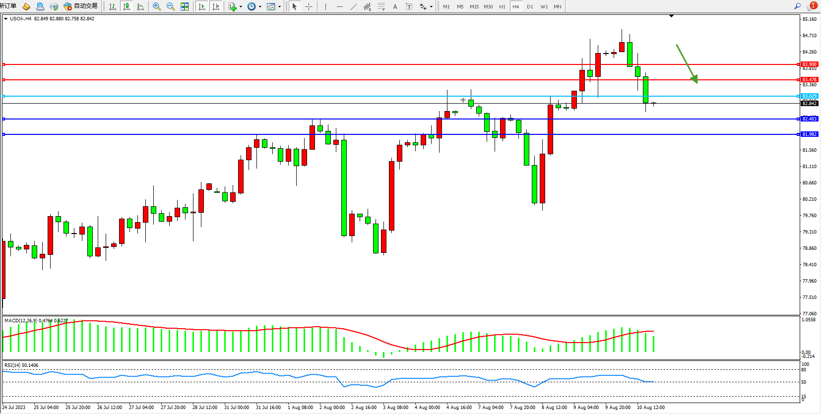 原油USOil——4小时K线图显示: