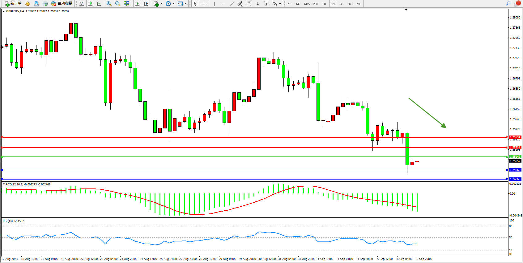 英镑美元GBPUSD ——4小时K线图显示: