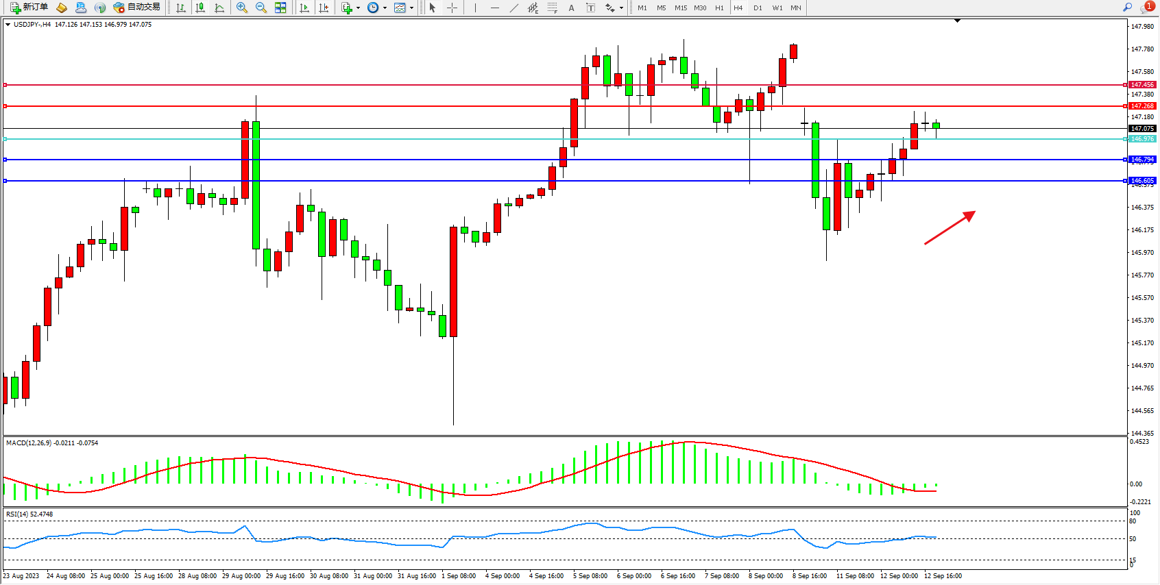 交易策略:146.976上方看涨,目标147.268 147.456