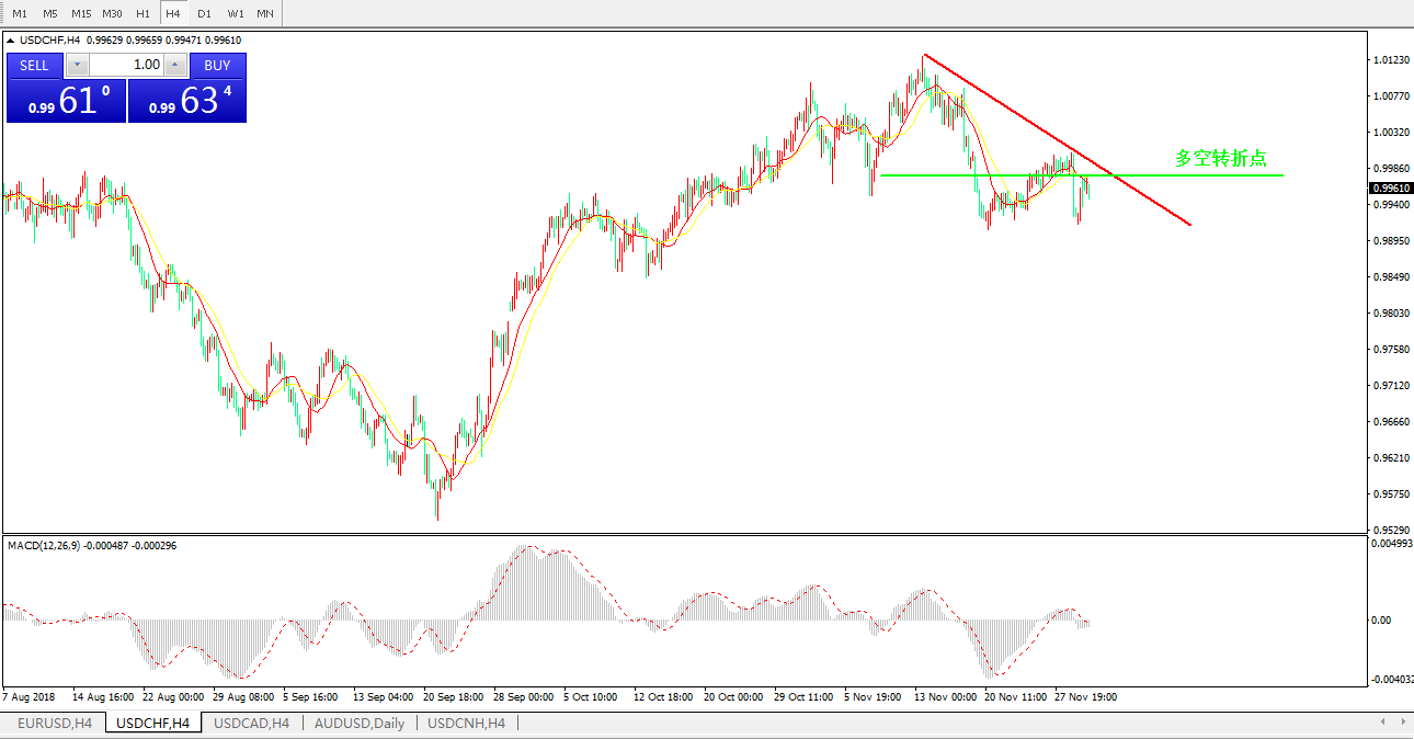 交易策略0.9974之下,看跌,目标价位为 0.9900 ,然后为 0.9850