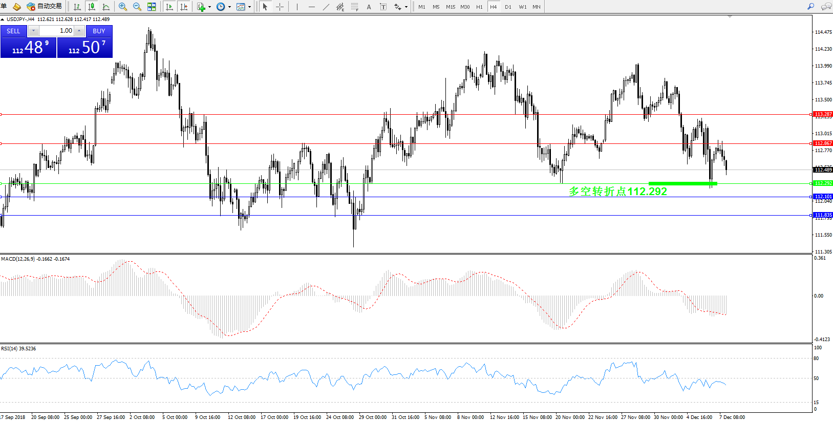 交易策略:112.292上方看涨,目标112.867113.287