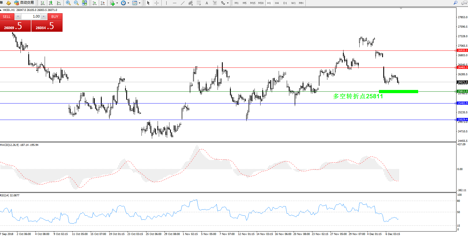 交易策略:25811上方看涨,目标26465.326935.5