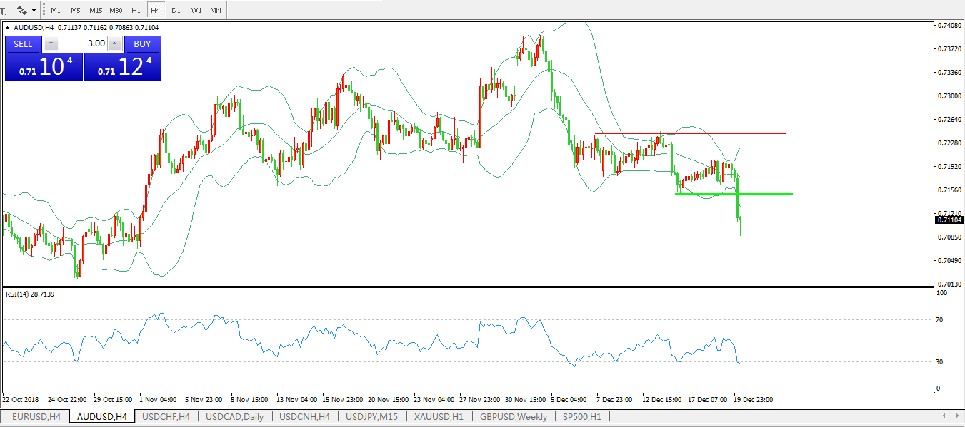 交易策略:在0.7148之下,看跌,目标价位为0.7085,然后为0.7049