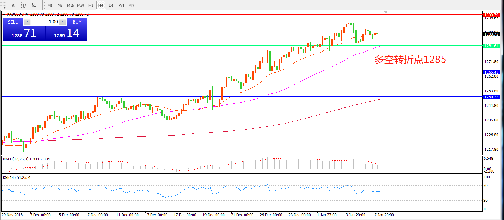 多空转折点:1285.00