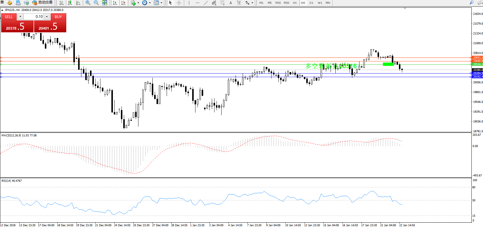 日经指数JPN225——4小时K线图: