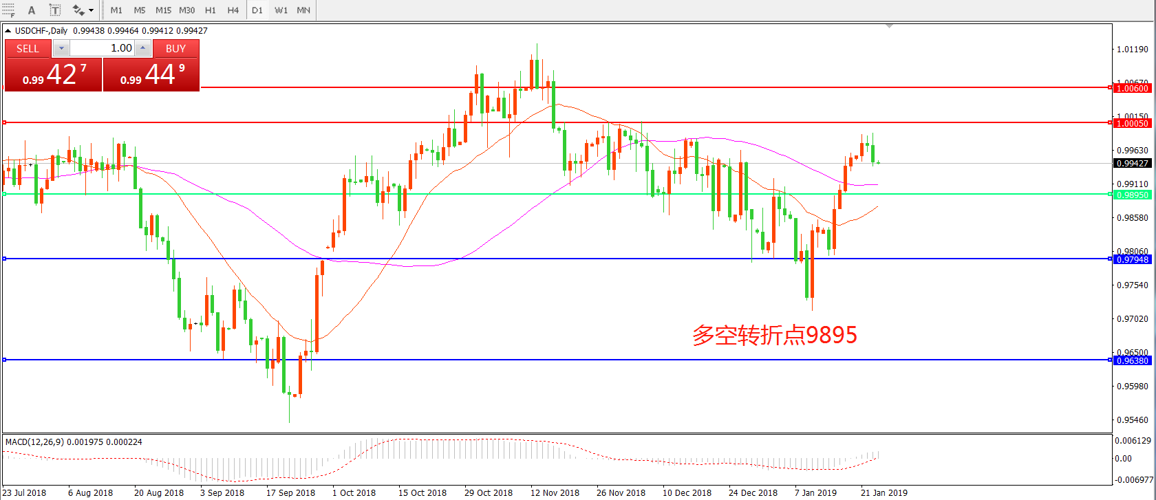 美元兑瑞郎USDCHF日线图