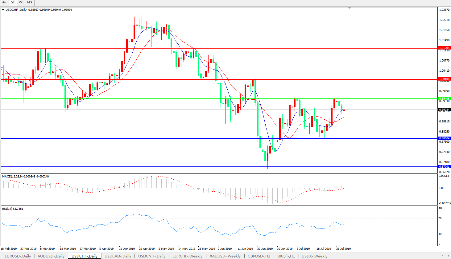 交易策略:0.9940下方看跌,目标0.98000.9700