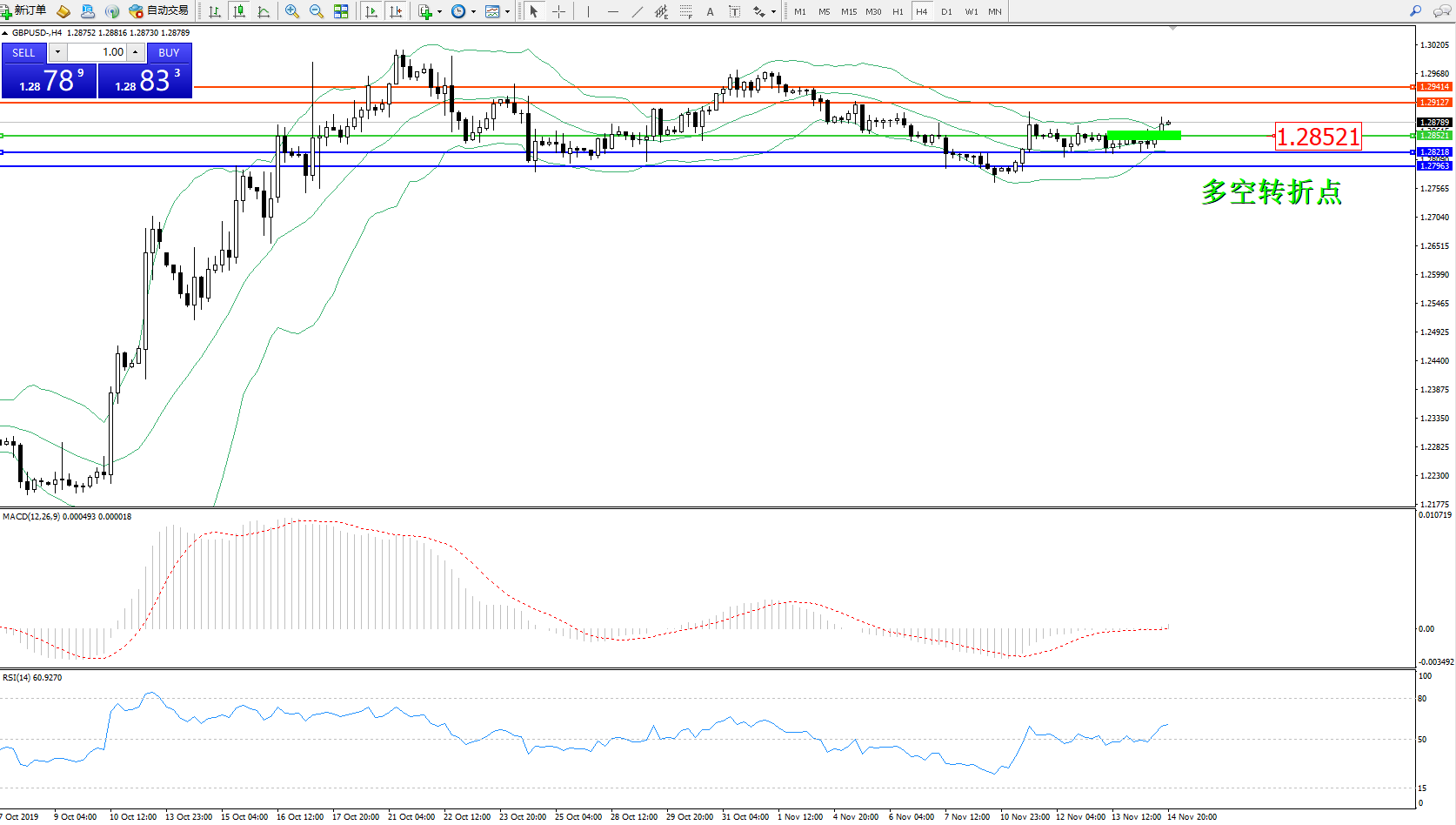 交易策略:1.28521上方看涨,目标1.291271.29414