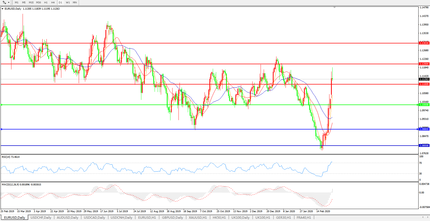 瑞士瑞信银行(Credit Suisse)发布技术分析报告指出,欧元兑美元短线在中期下行通道中料将进一步反弹。汇价的长期走势在1.0778/51寻获强劲支撑,但近期开始反弹,尽管依然处于一个清晰的中期下行通道内,该货币对有望在短线内保持上行。欧元兑美元一度上涨1.4%至1.1185,触及1月7日以来最高;货币对最新报1.1145;随着中央银行承诺在公共卫生事件下采取行动以支持全球经济,杠杆和套利头寸解除,欧元兑美元应声上升。欧洲央行政策制定者,包括拉加德,已经表现出不愿在目前负0.5%的基础上进一步降息。