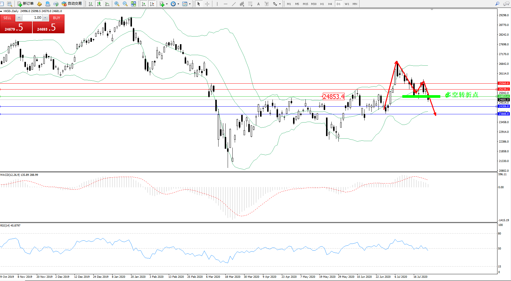 恒指HK50 ——日K线图显示:
