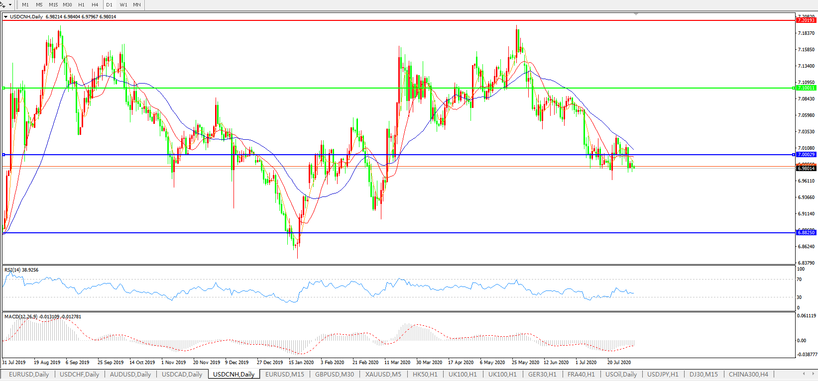 备选策略: 在7.1000之上,看涨,目标价位为7.2000,然后为7.3000。