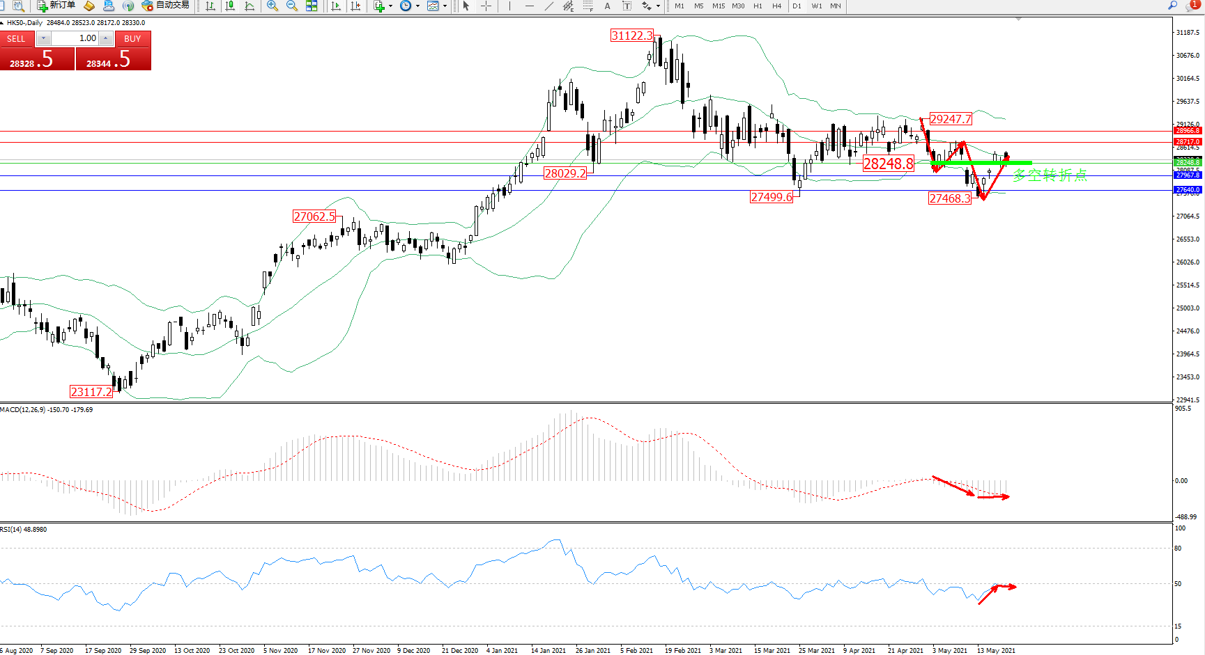 恒指HK50 ——日K线图显示: