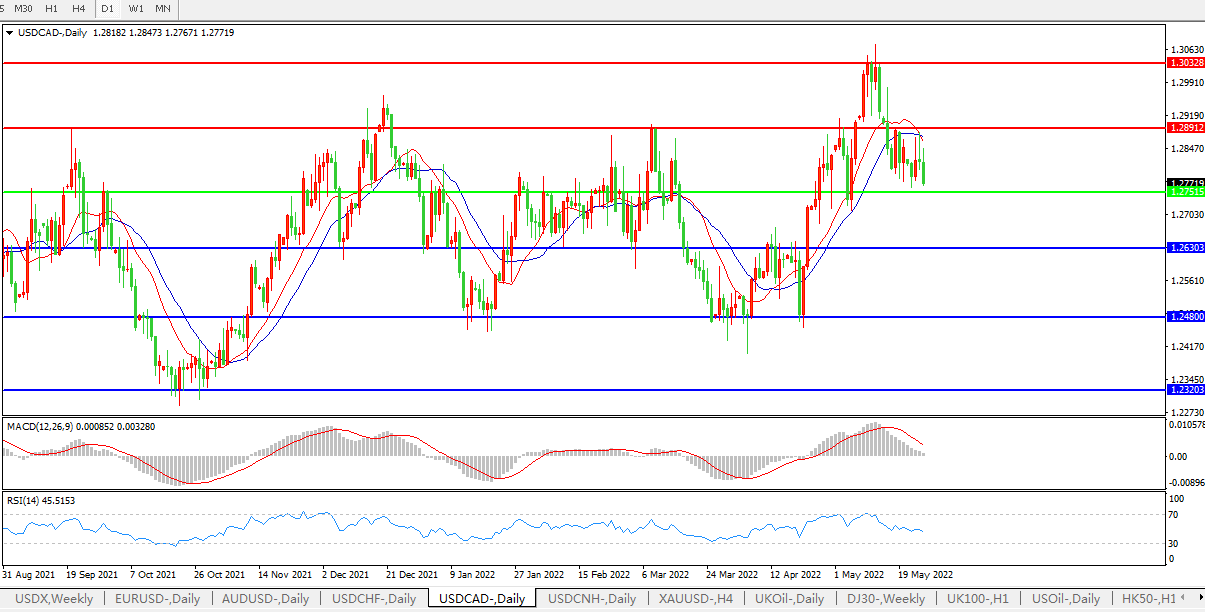 USDCAD  CADJPY   供应吃紧制裁持续,美元兑加元继续下行
