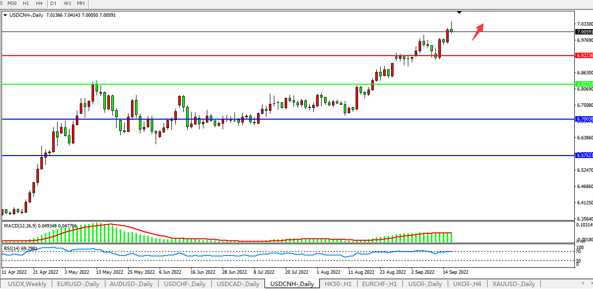 美元人民币USDCNH 日线图: