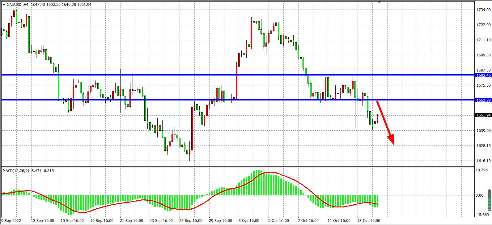 交易策略:在1663.00  之下看跌,目标1630.00            1615.00