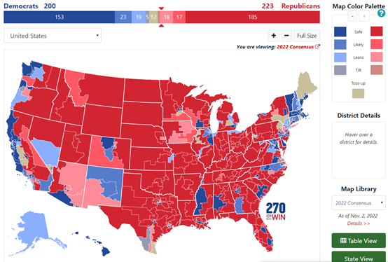 2022年美国众议院选情图