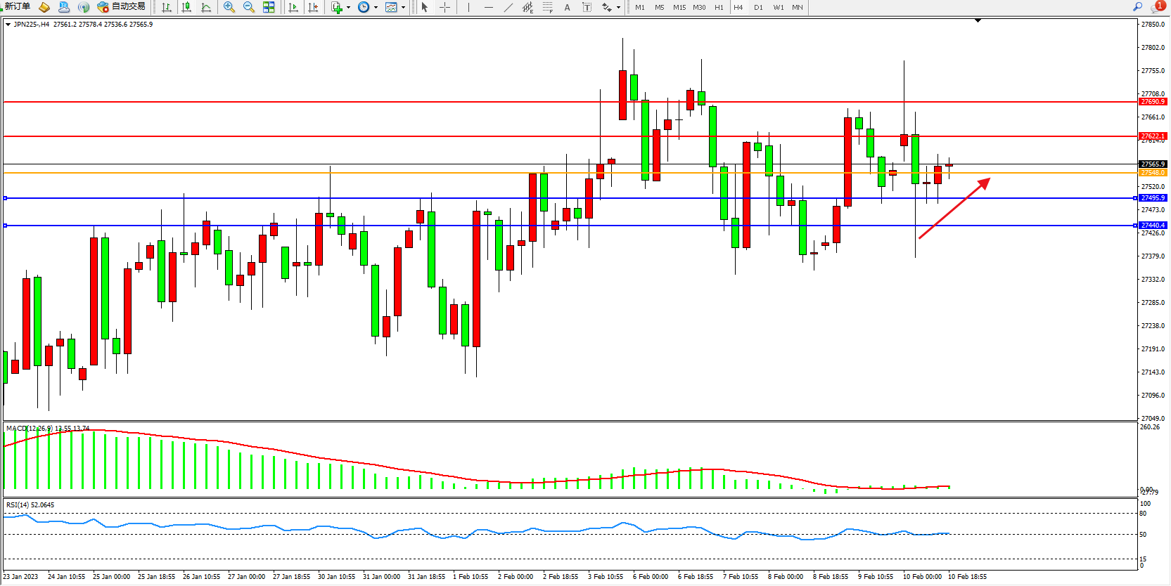 日经指数JPN225——4小时K线图显示: