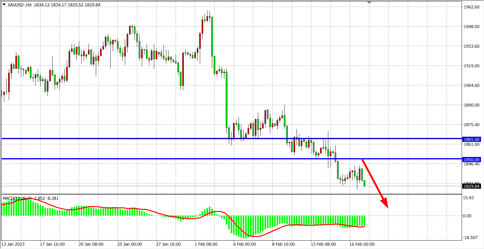 交易策略:在1850.00 之下看跌,目标1830.00 1820.00