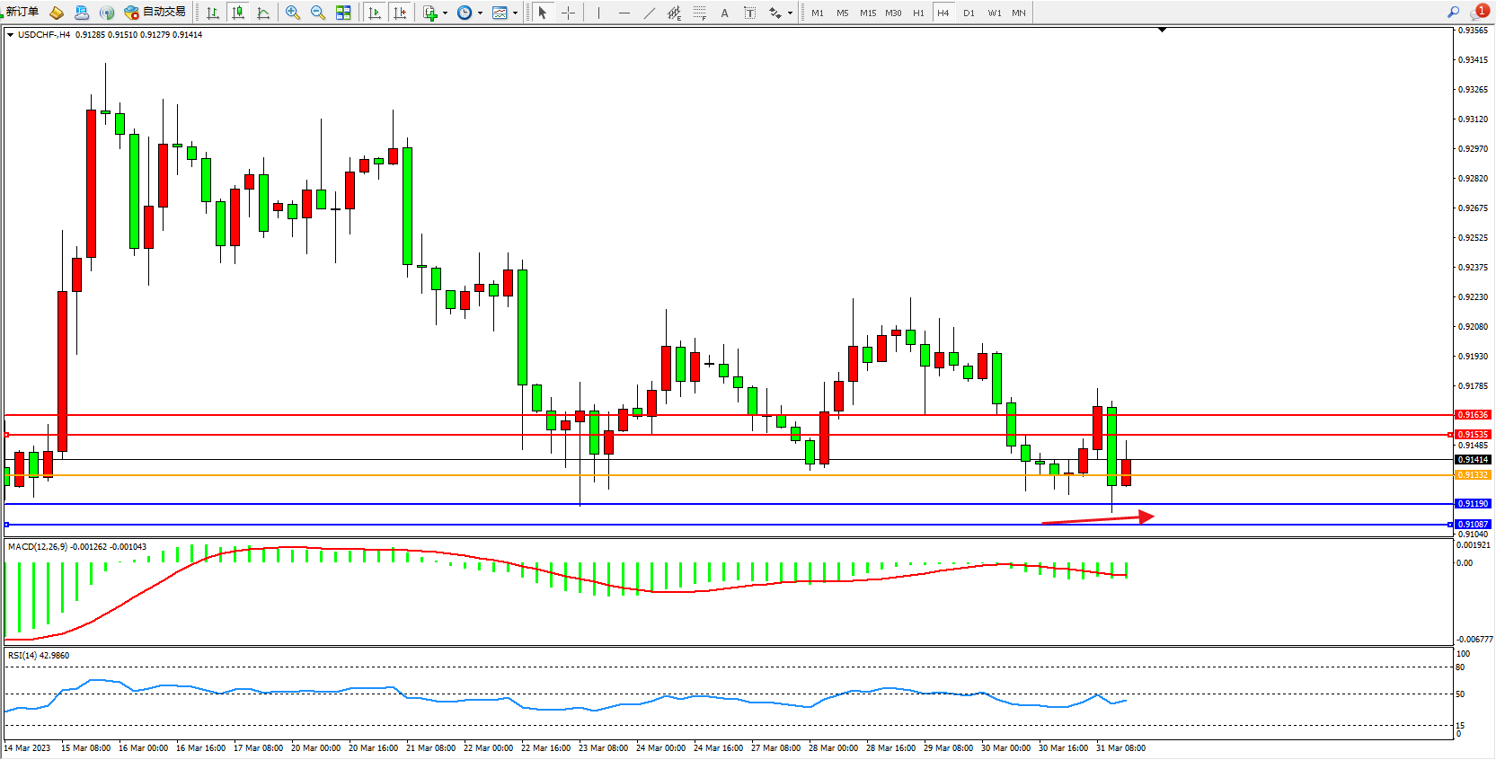 备选策略:0.91332下方看跌,目标0.91190 0.91087