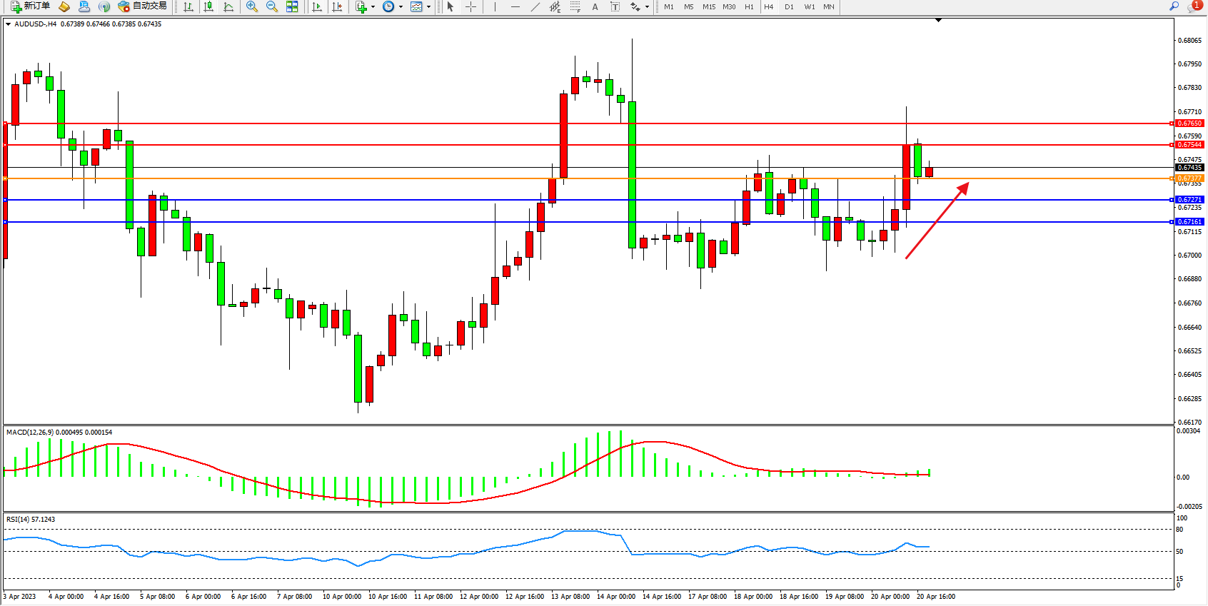 阻力位:0.67544  0.67650