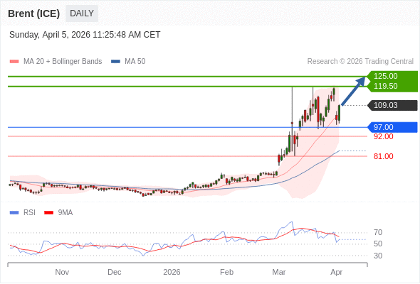 布伦特原油 (ICE) (M6) 短线: 在97.00之上,看涨。
